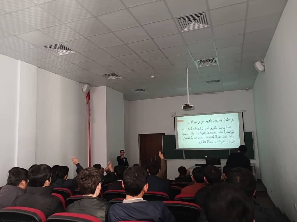 18.11.2025 / Маҳфили илмии "Беҳтарин забондон" (забони арабӣ) бо донишҷӯёни факултети филологияи Шарқ дар мавзуи "Ҳиссаҳои нутқи забони арабӣ ва хусусиятҳои хосси онҳо"
