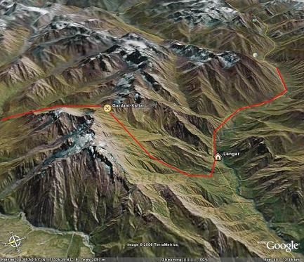 Вид из космоса: Путь на перевал Гардани-Кафтар от кишлака Лангар. Центр снимка в Google Earth: 38° 57' с.ш. 71°02' в.д. Как считается в Таджикистане, путешествия к святым местам может открыть новые силы, новые источники энергии. Но для этого надо быть очень чистым. Иначе энергия обернется потив тебя. Некоторых мазоры не пускают – так с нами было много раз, иногда мы проходили немало километров, и вдруг на последнем участке люди, физически сильные и выносливые, вдруг чувствуют лень, слабость, или «вспоминают о неотложных делах внизу» – и категорически отказываются идти на мазор. Иногда же после посещения мазора наступают невероятные приключения, нередко опасные и неприятные. Но разные мазоры влияют по-разному. Одни встречают тебя с открытой душой, а на возвращении посылают вереницу кошмаров. Другие – наоборот, придают много сил на многие годы жизни.